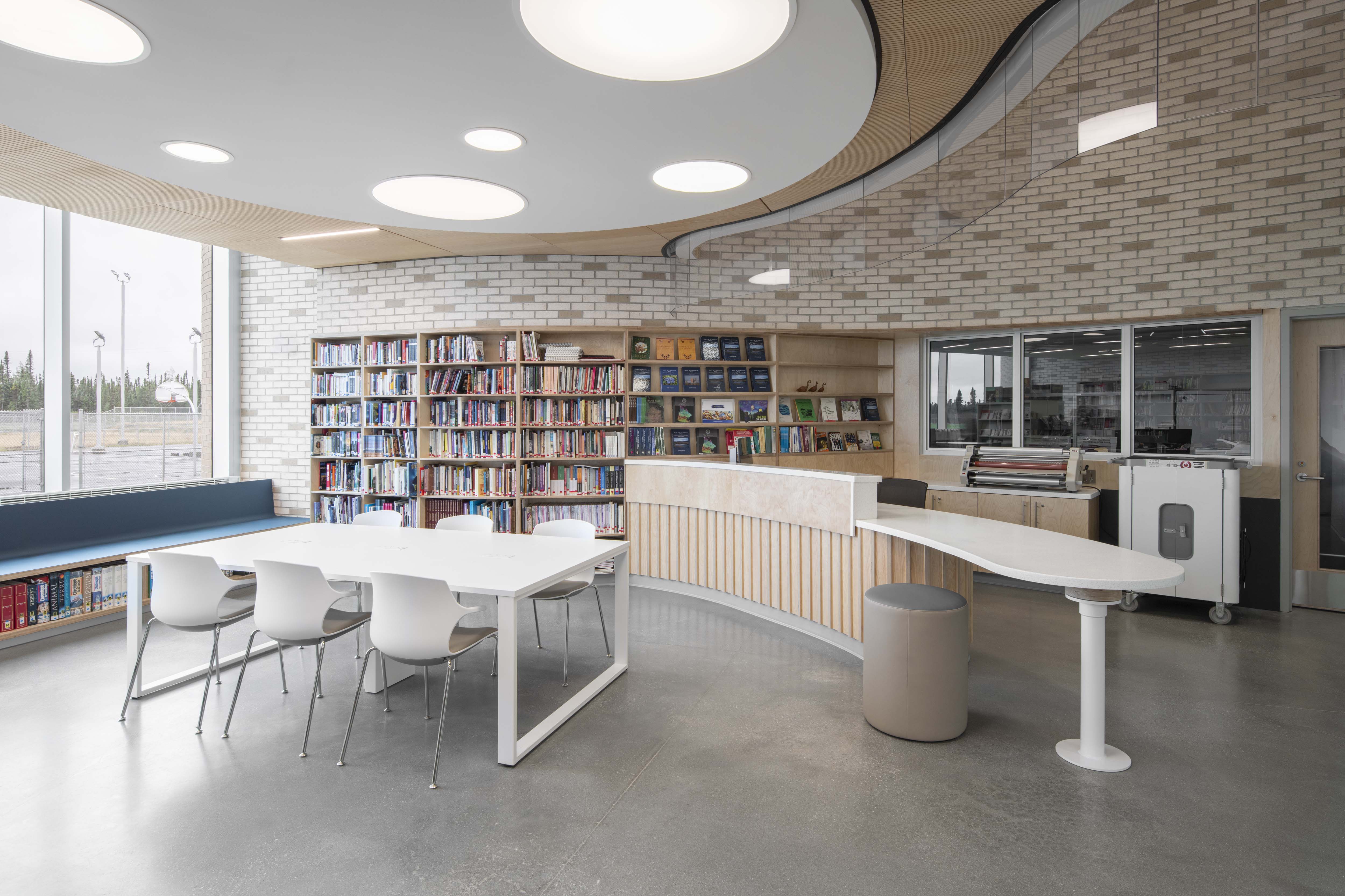 Due to the collaborative planning effort, the design team can adapt the government space allocation standards to the local context and requirements. It was decided to integrate multiple collaborative spaces of various dimensions adjacent to the classrooms. The design also includes an agora, a central gathering place in the heart of the school, a space dedicated to the passing of knowledge between elders and students, as well as a support services centre for students (academic, emotional, health).