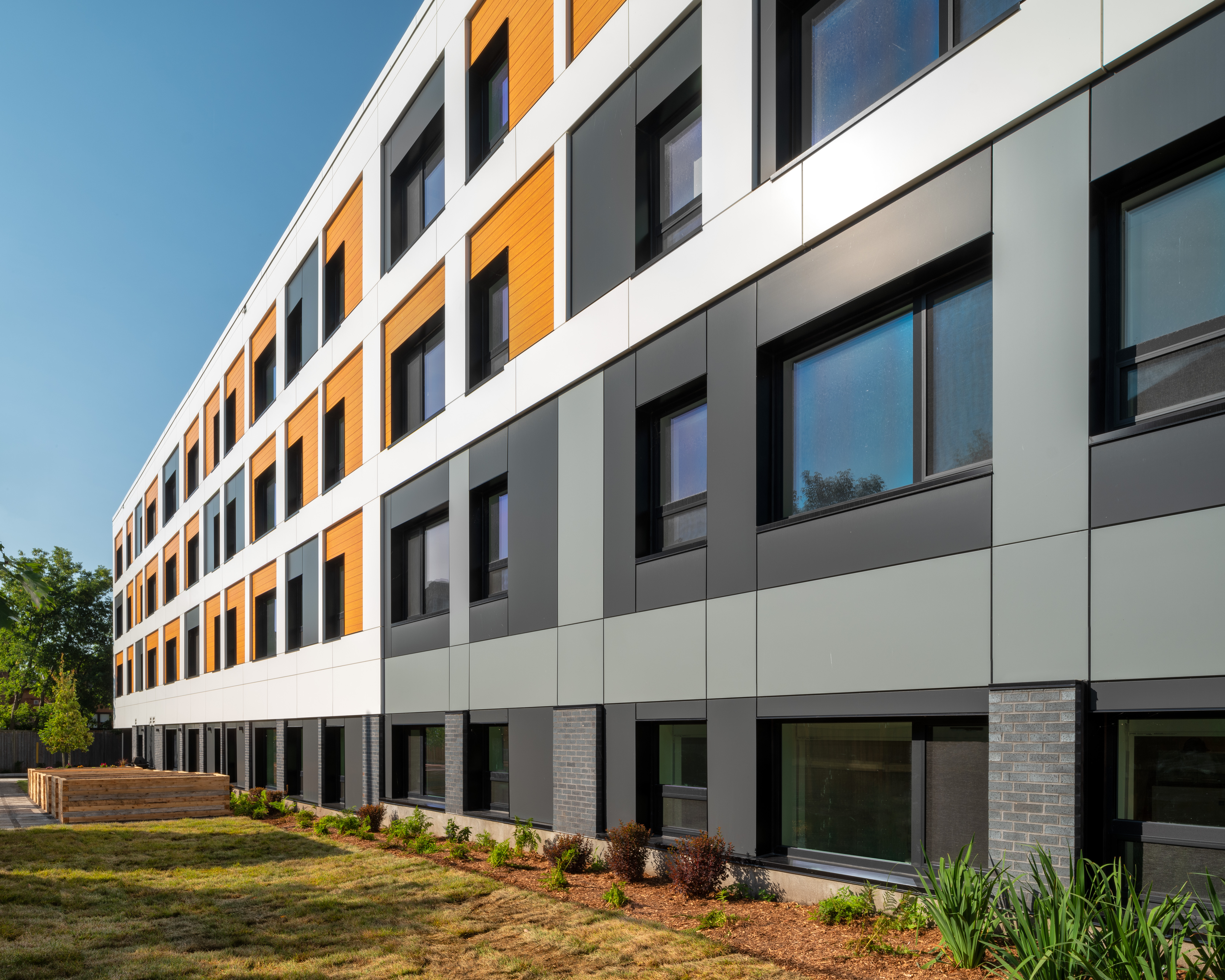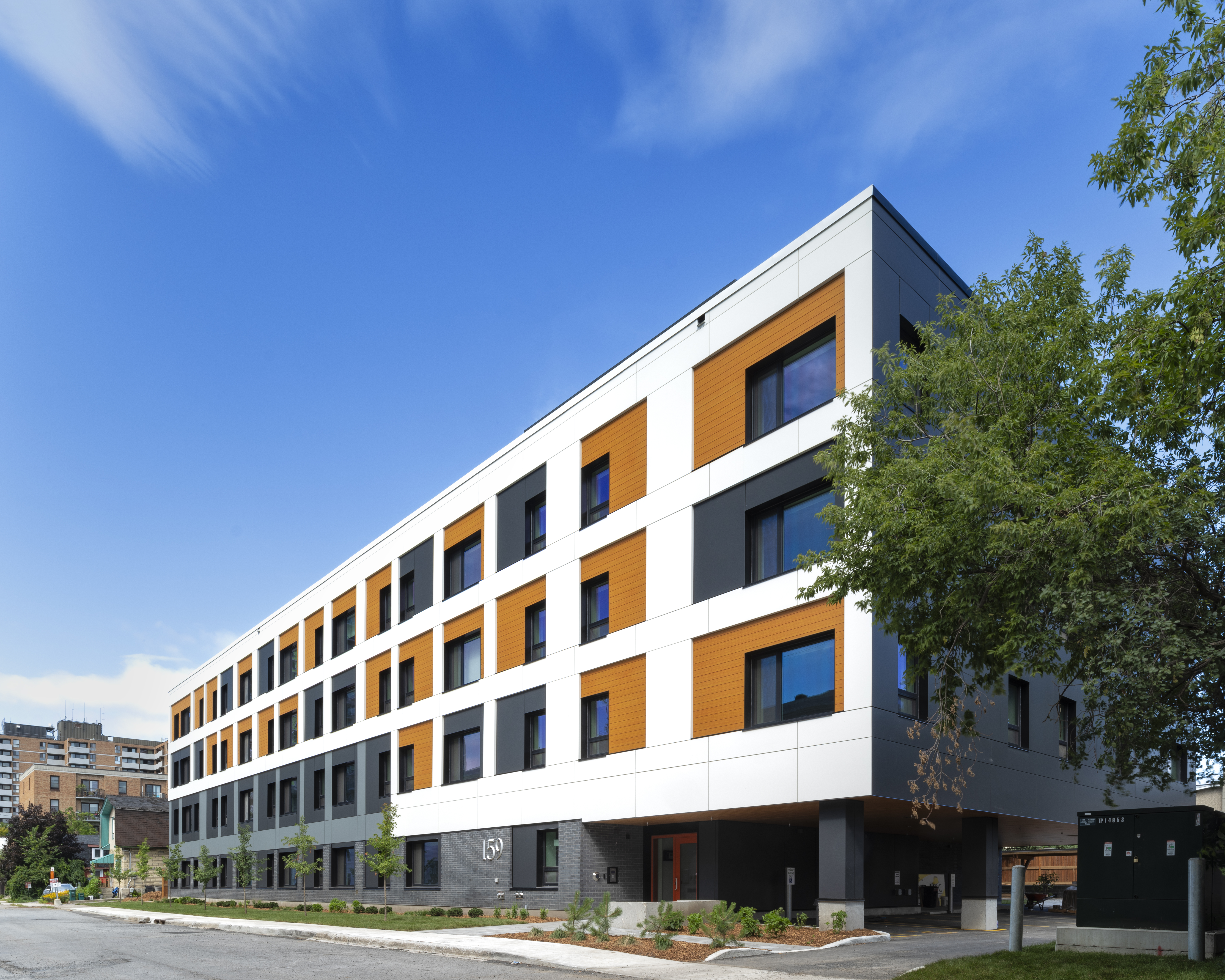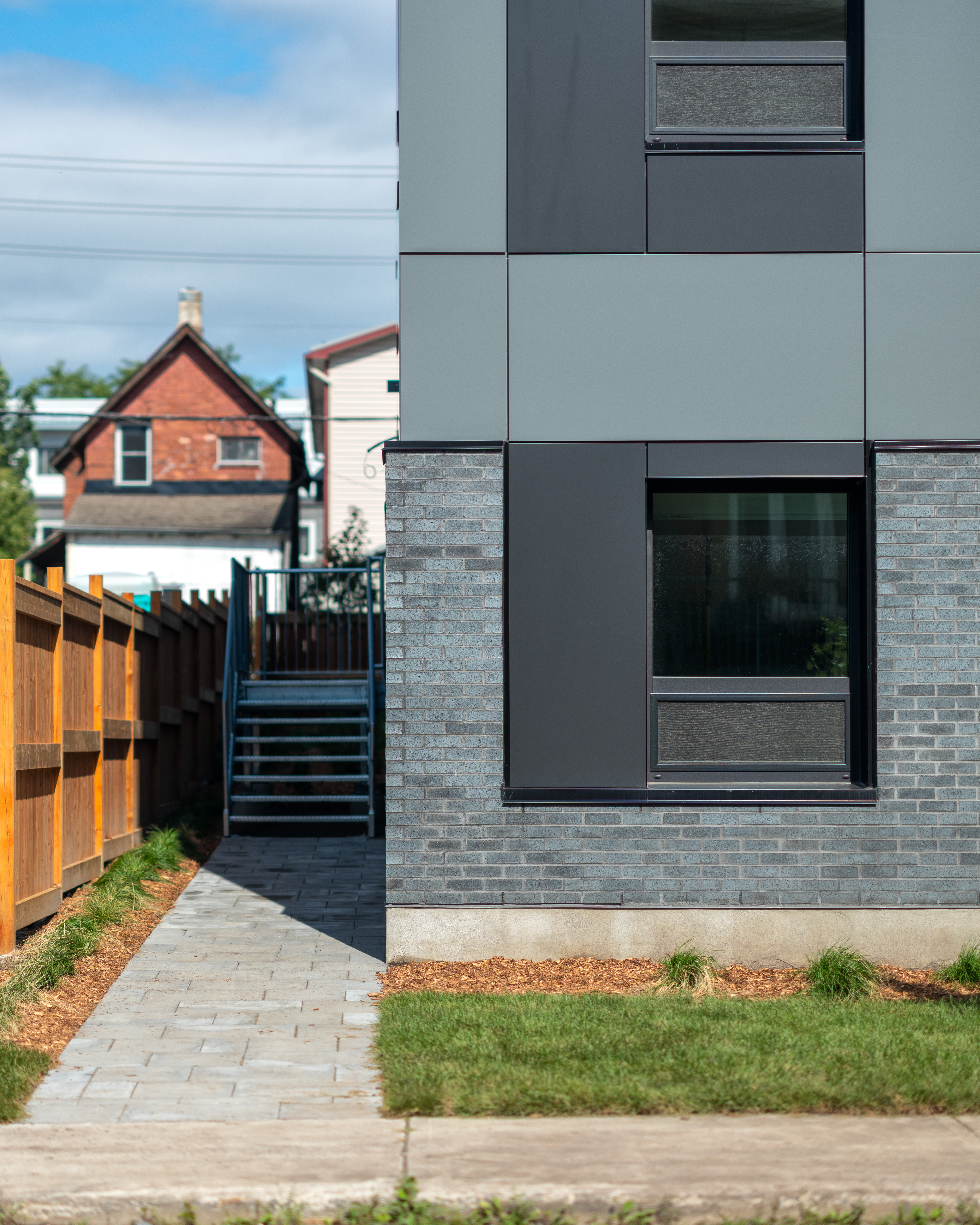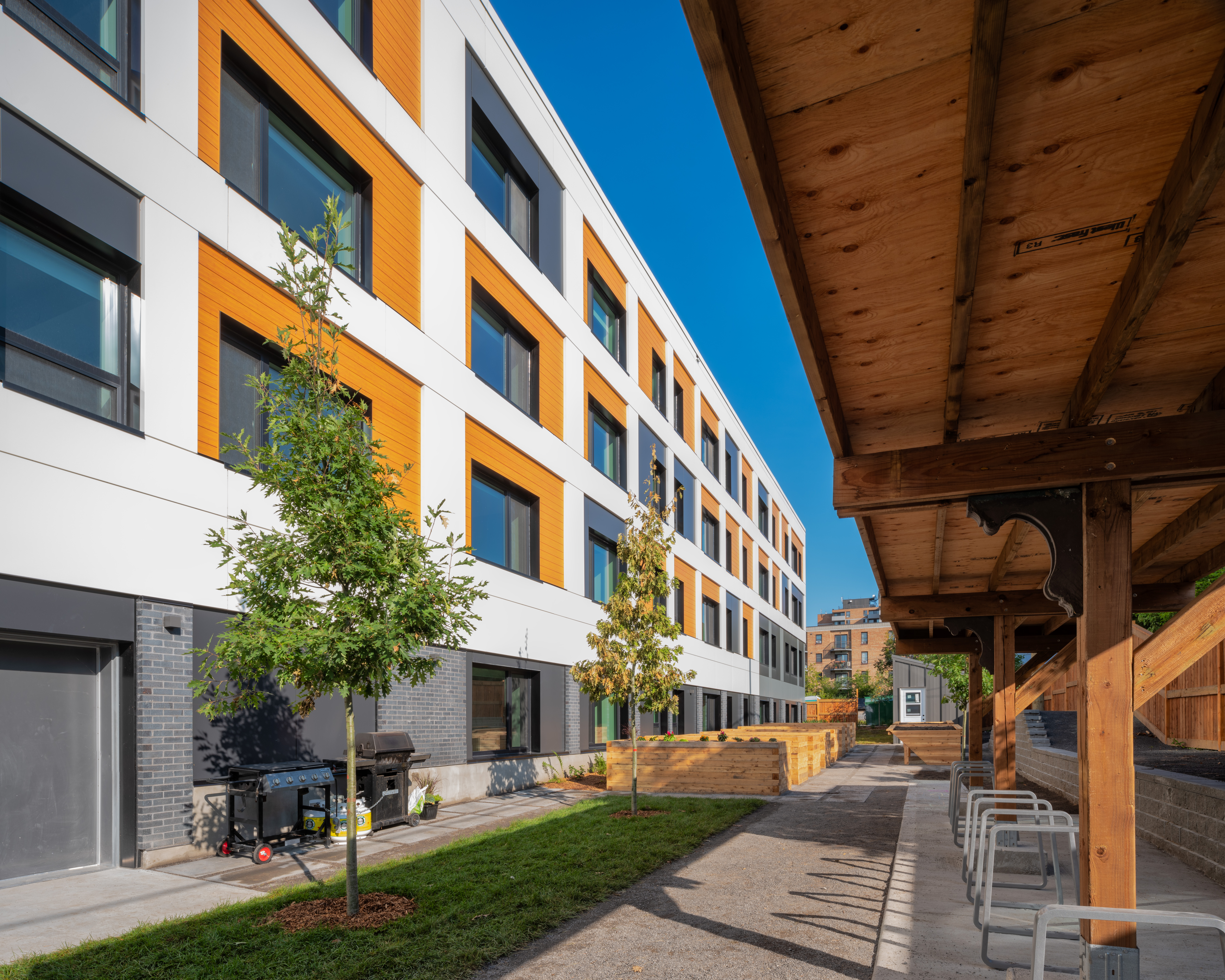 Ce projet est un excellent exemple de densification urbaine axée sur la communauté et fournit à la ville des logements abordables dont elle a grandement besoin. L'immeuble est conçu pour répondre aux besoins des familles dans un quartier en pleine expansion et comprend plus de dix unités de deux chambres à coucher et 12 unités de trois chambres à coucher axées sur la famille. L'immeuble comprend également des appartements entièrement accessibles et 16 unités conçues pour personnes à mobilité réduite. Les logements sont loués aux prix moyens du marché, aux prix inférieurs au marché et aux prix du centre d'hébergemen. Pour favoriser la réussite des locataires, une cour arrière entièrement accessible permet d'accéder à des jardins communautaires, à un local à vélos couvert et sécurisé, ainsi qu'à des espaces sociaux indispensables.
