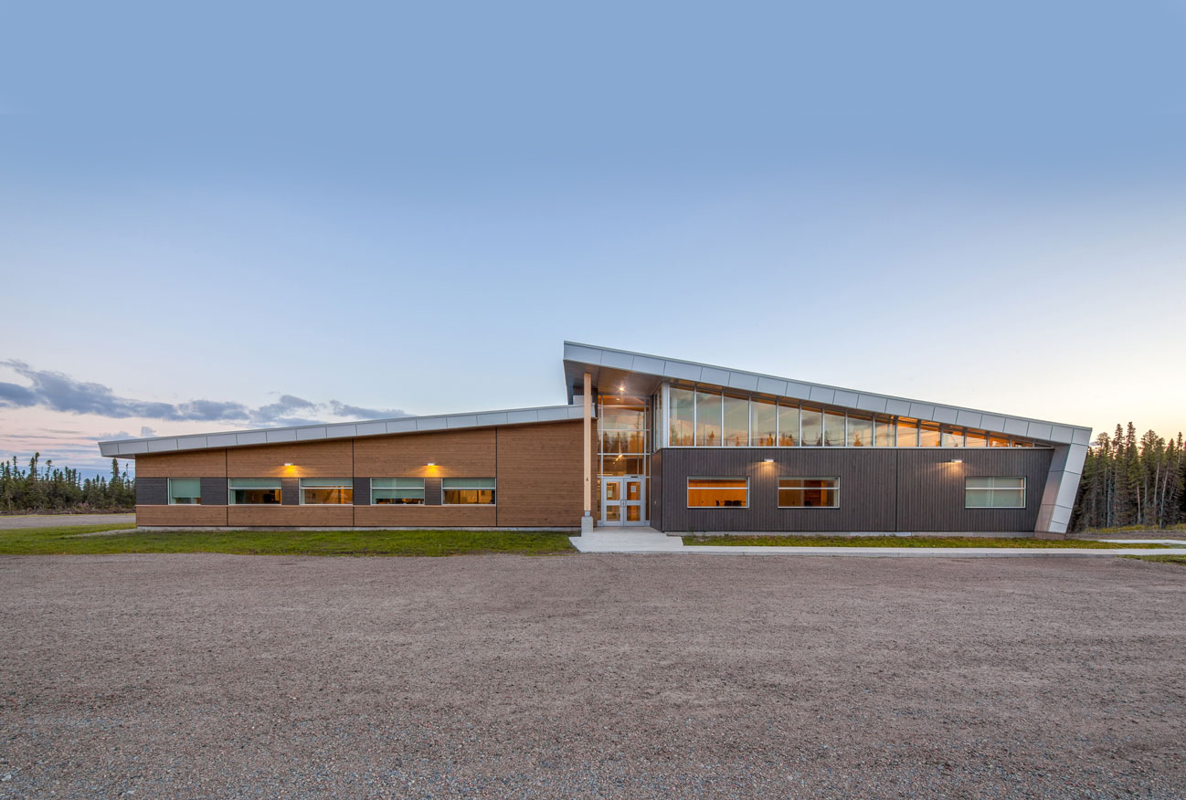 L’objectif de conception sous-tendant le projet était de créer un espace de travail attrayant, facile d’accès et proche de la nature, qui est l’élément fondateur de la culture crie. L’espace est ainsi constitué de deux volumes carrés, surmontés chacun d’un toit en aluminium à double pente se rejoignant au milieu du bâtiment. Une attention particulière a été portée à l’éclairage naturel direct et indirect, afin de favoriser les liens et vues de l’intérieur du bâtiment vers l’environnement naturel entourant l’édifice.