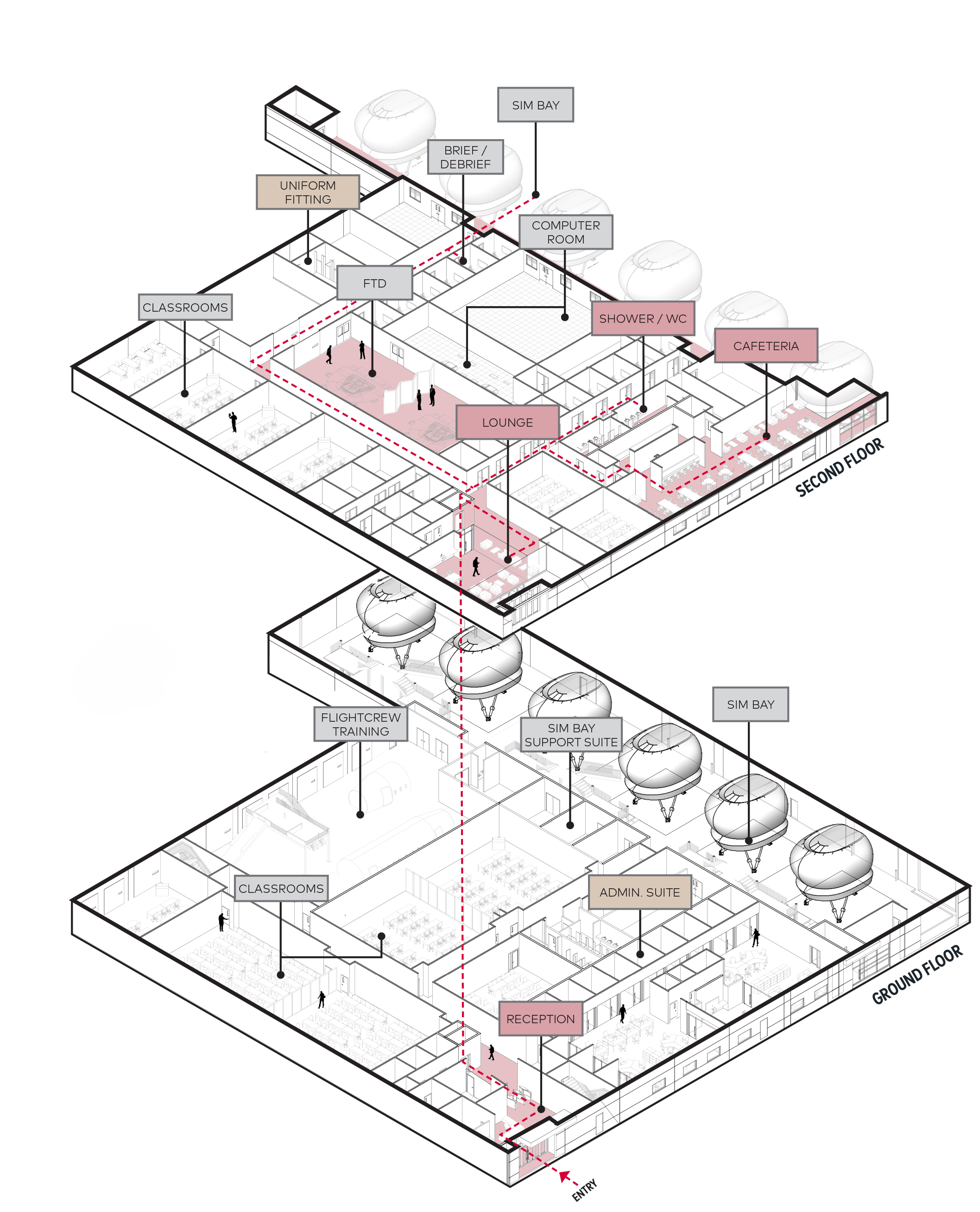 En tant qu'architectes et concepteurs, nous sommes constamment animés par la quête de nouveaux défis et d’opportunités d'apprentissage. L’industrie aéronautique, avec ses enjeux uniques, nous offre une multitude de possibilités pour enrichir notre expertise. Nous avons eu le privilège de travailler sur une large gamme de projets de formation aéronautique, en collaboration avec des organismes de formation, des fabricants de simulateurs, des transporteurs aériens, ainsi que dans les secteurs de la défense et de la sécurité. Cette expérience diversifiée nous a permis de développer une compréhension approfondie des aspects techniques et opérationnels liés à la formation des pilotes, du personnel de cabine et des équipes de maintenance.