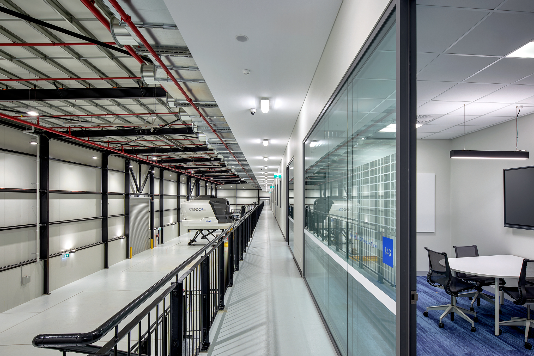 La sécurité — priorité absolue de l’aviation — a guidé les décisions de conception clés. Reflétant la rigueur de l’industrie en matière de gestion des risques, les systèmes du bâtiment intègrent des principes de redondance, notamment des systèmes d’alimentation de secours et des contrôles environnementaux à sécurité intégrée pour les espaces de simulation.